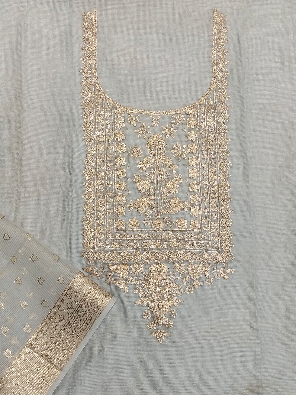 Pure Jamdani Beige Handwork Unstiched Suit